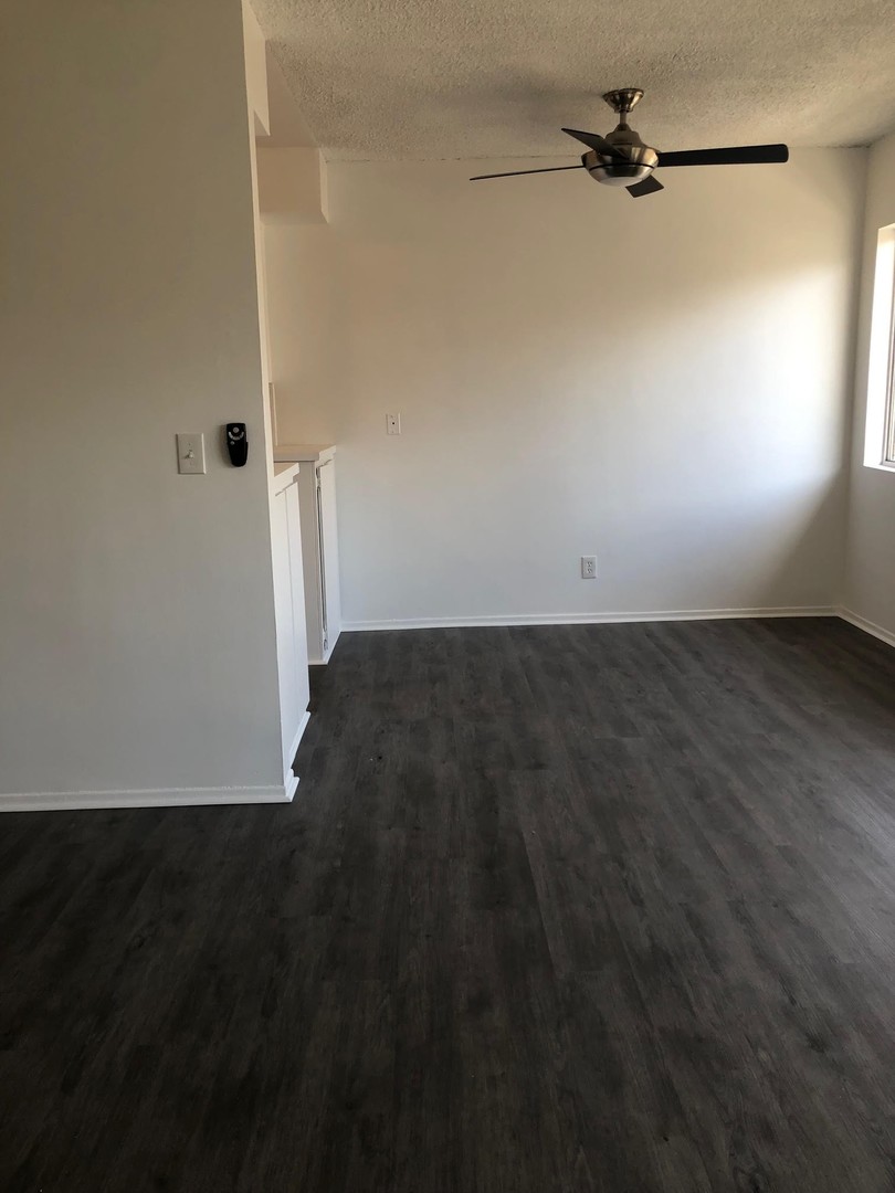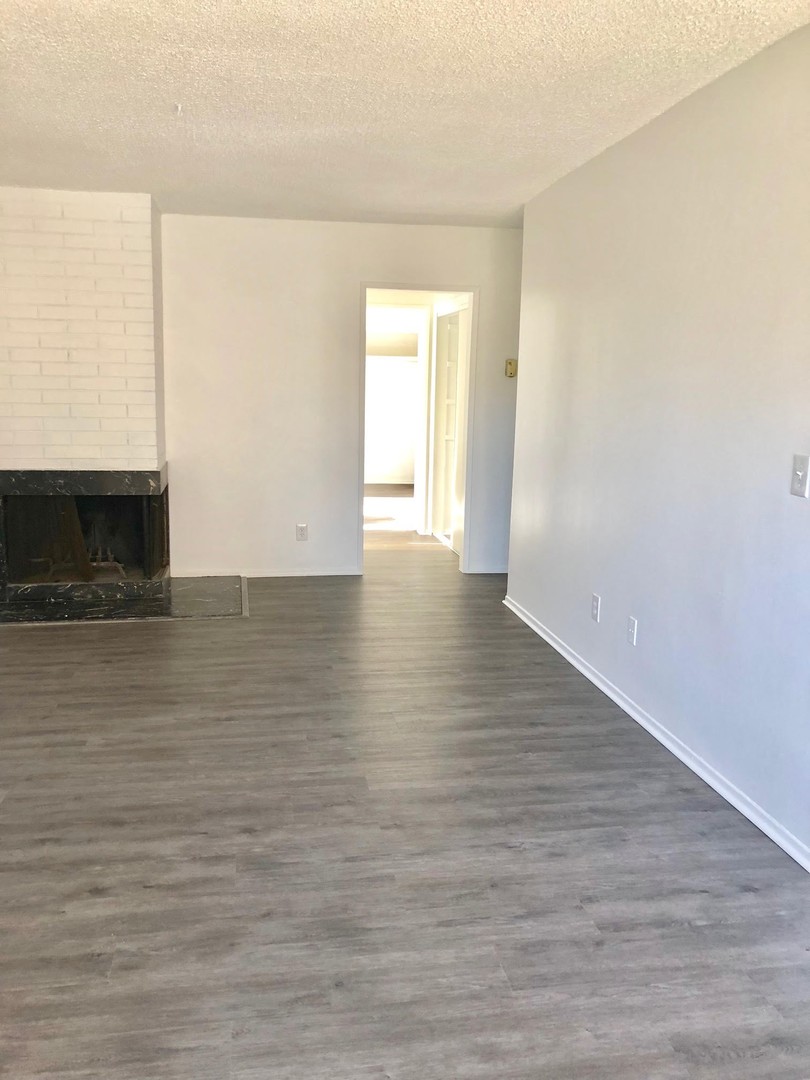 Hardwood style flooring throughout, living room features a fireplace; the kitchen has ample cabinet space, refrigerator, stove, and dishwasher for your convenience.
